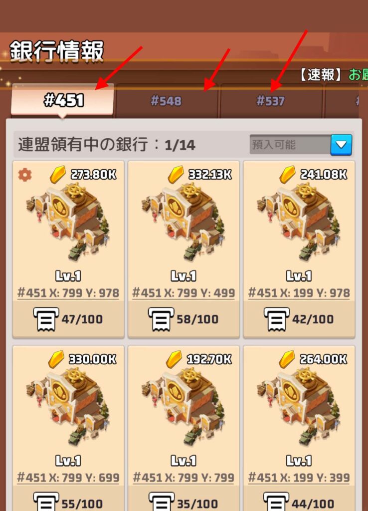 - 他連盟が占拠している銀行(解放してくれていたらの条件付)