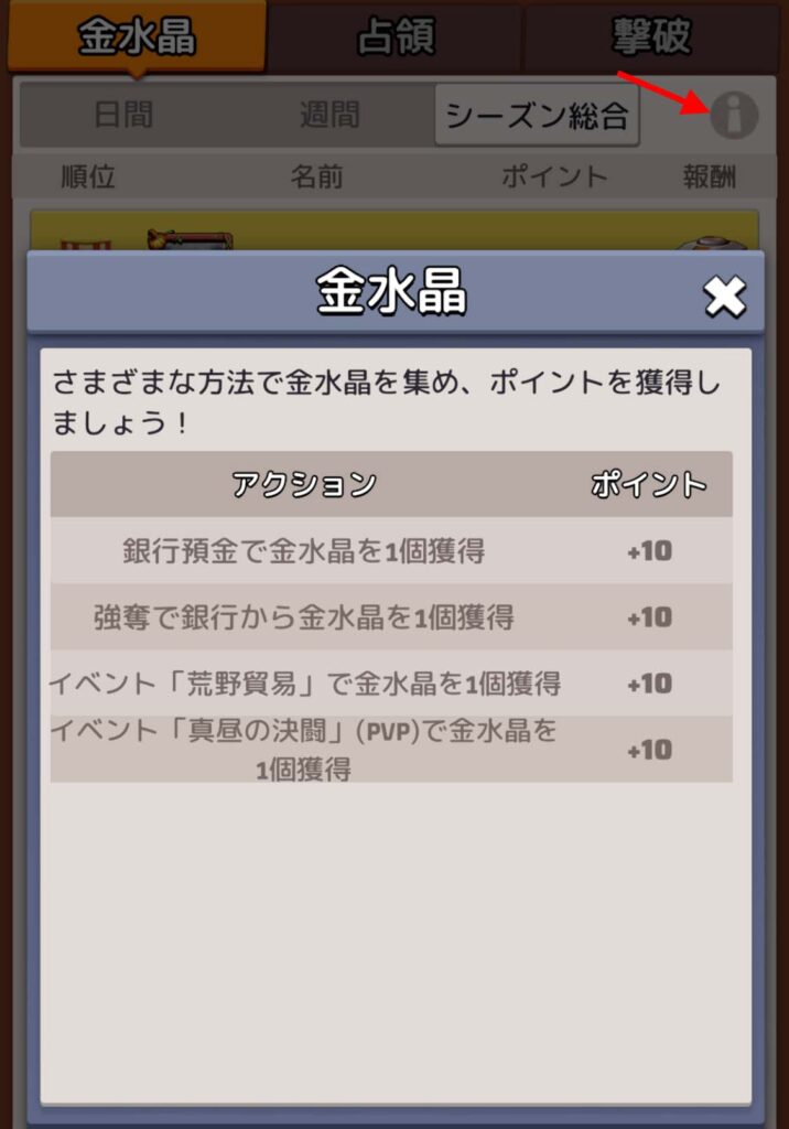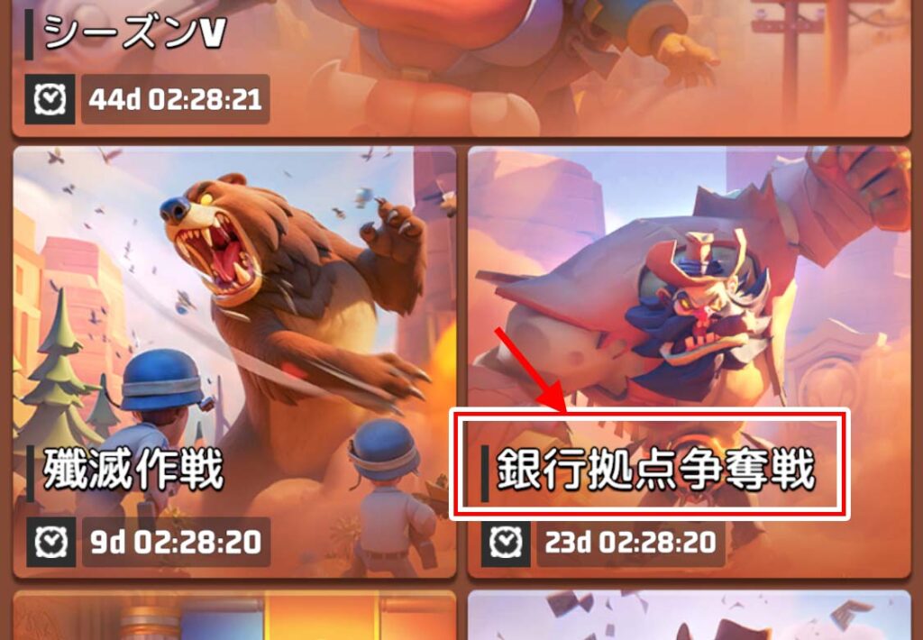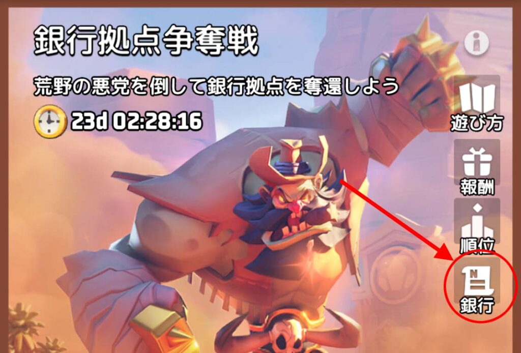 銀行強奪は基本的に他戦域と銀行拠点を争うとき、占拠に成功すれば、その流れで一定数の金水晶がゲットできます。自戦域内で争うことは基本的に無いので、発生するとしてもシーズン中盤から後半にかけてとなります。