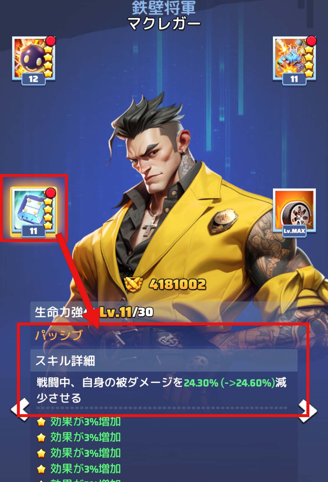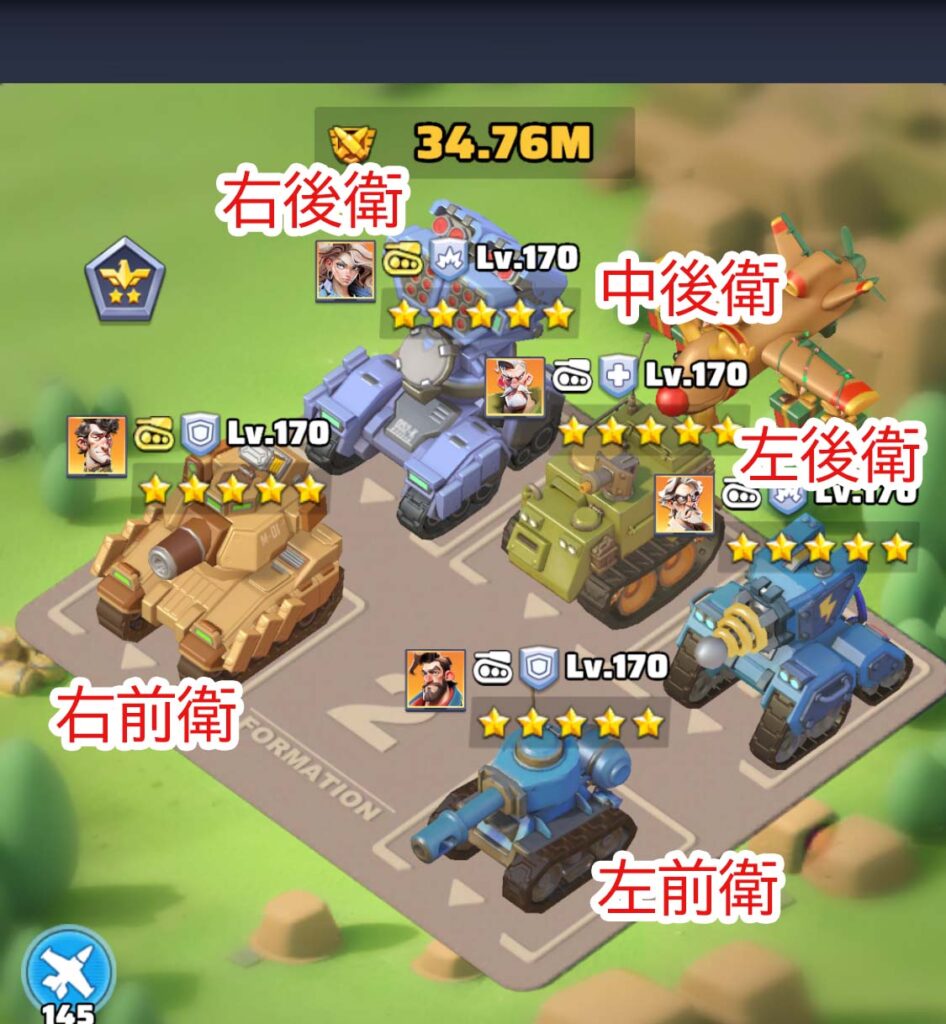 左前衛は最も防御に優れている英雄を配置しましょう。ラストウォーでは例外を除き、前衛が崩されて後衛がやられるというパターンです。前衛が耐えるほど後衛が長く攻撃できるとも言えますので左前衛は優秀な英雄配置を。