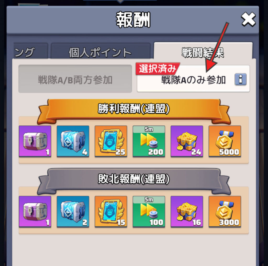 連盟報酬というより、個人が頑張ることで得られる「個人報酬」がとても良いので、個人がしっかり戦える状況や時間が必要です。参加人数が20名を超えてくるような連盟の場合、参加者(20名)候補者(10名)でAだけ解放、という選択で本当に良いのか?よく検討されてください。交代できないよってパターンもあるかもしれません。