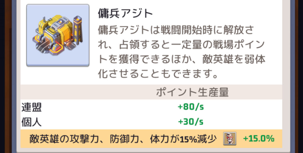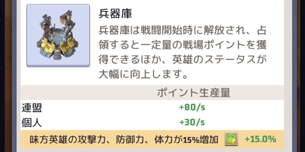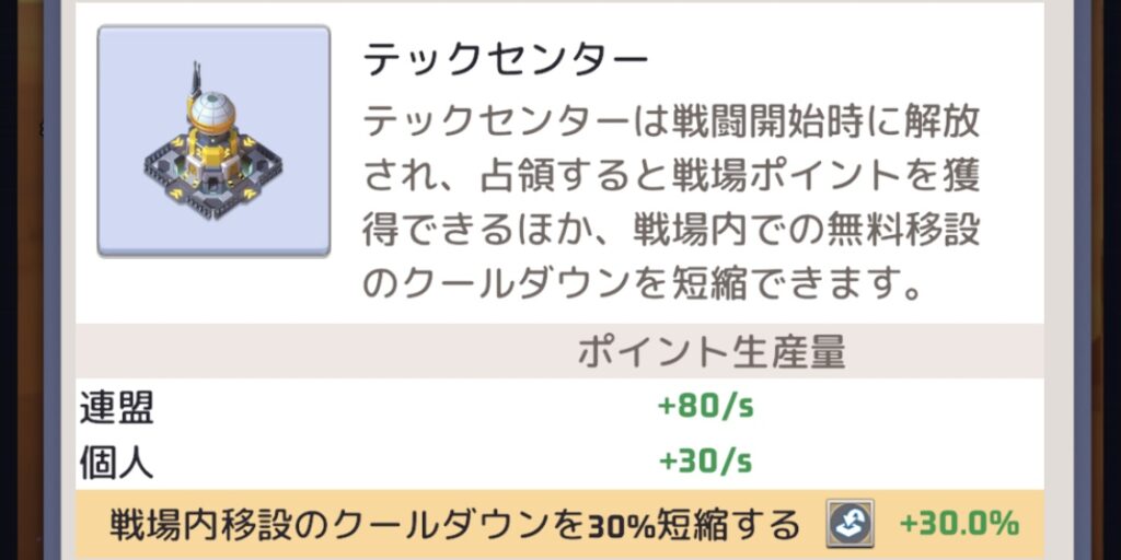 誰も占拠していない建物を占拠する(青に変える)、敵が占拠している赤い建物を占拠する(青に変える)、そしてそれを青のまま継続させる、ことで毎秒連盟ポイントが加算されます。青色になっていればOKなので派兵は必要ありません。