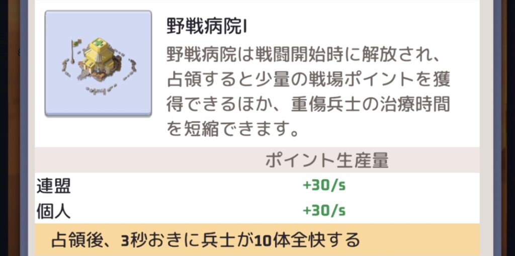 ポイント低いけどみんなの兵士が3秒おきに10回復
