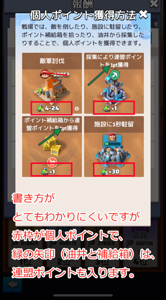 油井と補給箱は、個人ポイント対象でもあるのですが、連盟ポイント対象でもあります。