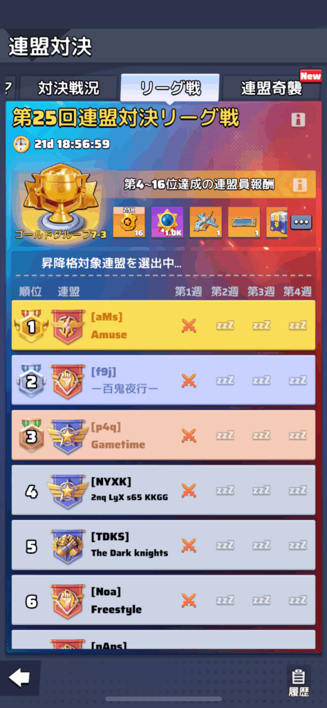- 連盟対決6日目 最終日【毎週土曜】 連盟奇襲対決!