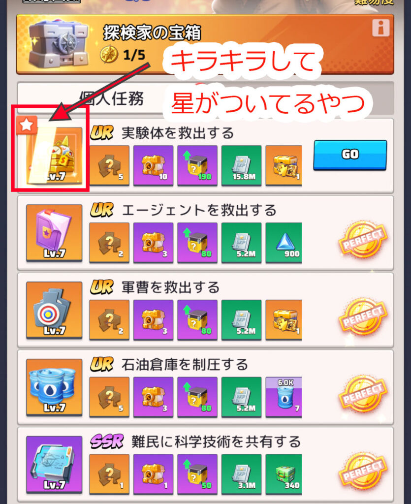 キラキラ任務とはURはURでも、✨星付きの特別なUR任務です。下記画像の一番上の任務がそうですね。